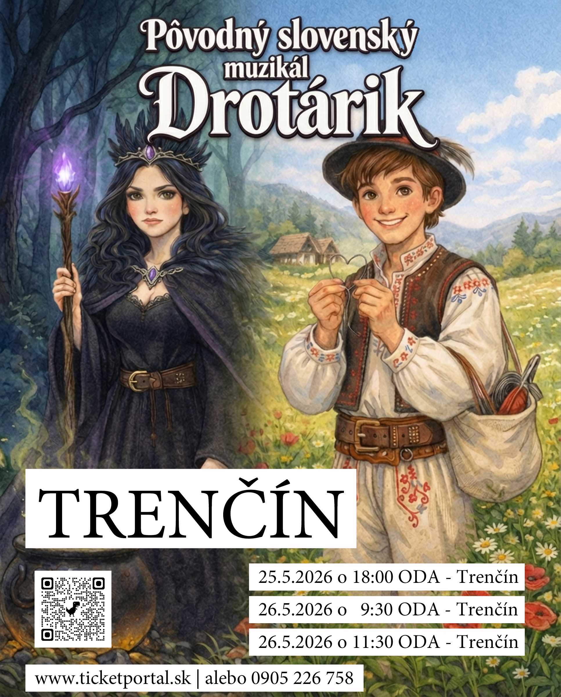Vydajte sa na čarovnú cestu plnú dobrodružstva, humoru a ľudovej mágie! Muzikál Drotárik prináša rozprávkový príbeh, v ktorom dobro víťazí nad zlom a odvaha, priateľstvo i láska majú tú najväčšiu silu.